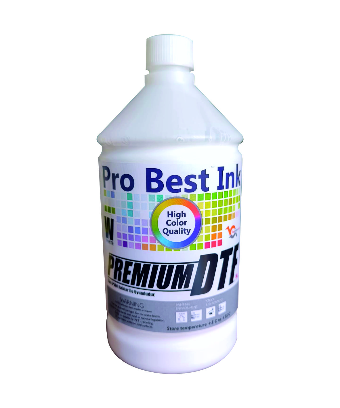Pro Best Ink DTF White / Pro Best Ink DTF BeyazPremium serisi ile Daha ESNEK , Daha BEYAZ ve Daha Örtücü renklerEsnemeye, çizilmeye, katlanmaya ve yıkamaya karşı dayanıklıdır. Kokusuz, su bazlıdır. EPSON I3200, 5113, 4720, XP600, DX5, DX7, TX800 serisi baskı kafaları ile ve tüm dijital baskı makineleri ile uyumludur. EPSON L1800 L800 ,L805 serisi masa üstü yazıcılarda kullanılabilir. Üstün Renk Yoğunluğu sayesinde canlı ve doğru renkler.Dijital baskı makinelerinde kullanılan DTF mürekkepler , Pet Film üzerine yapılan CMYK ve White baskıdan sonra tam kurumadan DTF toz (DTF Şeker) ünitesine girip boya alan yüzeylerim DTF Toz (DTF Şeker) ile kaplanması ile  fikse ünitesine gider ve kuruyup kullanıma hazır hale gelir.Bu işlemden sonra tüm tesktil yüzeylerine uygulanabilir. T-shirt baskıları yüksek oranda DTF mürekkepler ile yapılır.Tüm Epson seri kafalarda tıkanma yapmadan , yüksek örtücü beyaz ve mükemmel renklerdeki CMYK mürekkepler ile en kaliteli işleri en uygun fiyatlara gerçekleştirebilirsiniz.